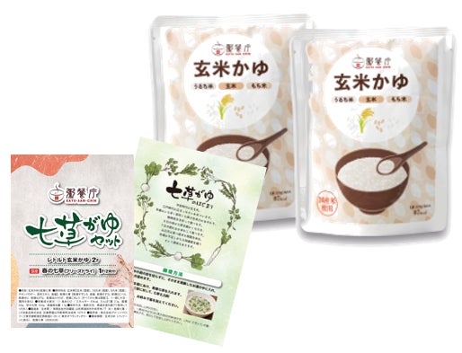 七草がゆをご自宅でもお楽しみいただけるよう、「粥餐庁」のレトルト粥と春の七草(フリーズドライ)がセットになった「レトルト七草がゆ(2食セット)」を店頭のほか、公式オンラインショップで先行販売中です。