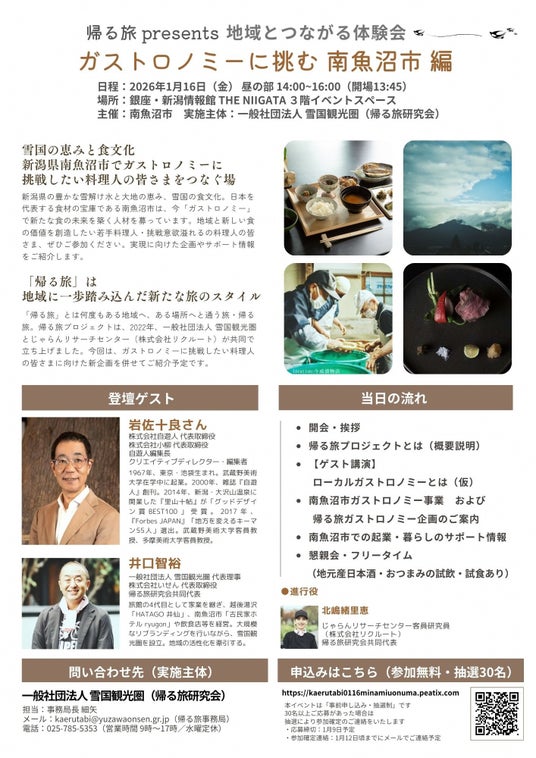 帰る旅 presents 地域とつながる体験会「ガストロノミーに挑む 南魚沼市 編」を開催します