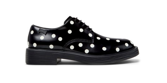 CAMPER 2026SSプレシーズンでは、「¡Bailemos!(踊ろう!)」をキャッチコピーに、南スペインの情熱とフラメンコの美学を現代的に再解釈したコレクションをお届けします。ブラック×ホワイトの大胆なコントラストに、ポルカドットやラッフル、フリンジなど伝統的なディテールを取り入れ、クラシックな要素をCAMPERらしくモダンに再構築しています。祭りの高揚感や踊りの躍動感を日常に落とし込み、力強さと洗練を融合させたデザインに仕上げました。文化と感情を纏うようなデザインが揃ったコレクションのなか、人気のライン「Dean」、「Casi Myra」が主役を飾り、新ライン「Anita」が登場。「Twins」シリーズも豊かなバリエーションで揃います。