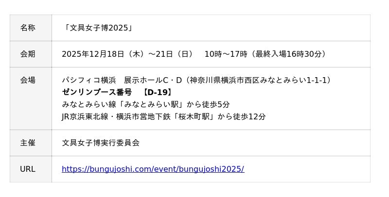「文具女子博2025」は、日本最大級の文具の祭典です。開催期間前の2025年12月17日(水)14時~17時はメディア向け内覧会になっており、ゼンリンブースで取材も可能ですので、ぜひお立ち寄りください。