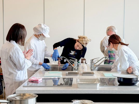 レシピ開発に取り組む栄養学部の学生と指導する教員