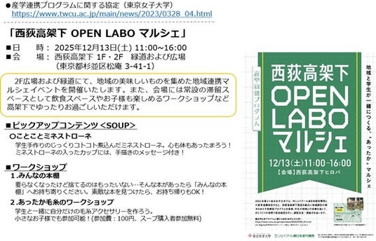 このたび、産学連携の一環として、「西荻高架下 OPEN LABO マルシェ」を開催いたします。