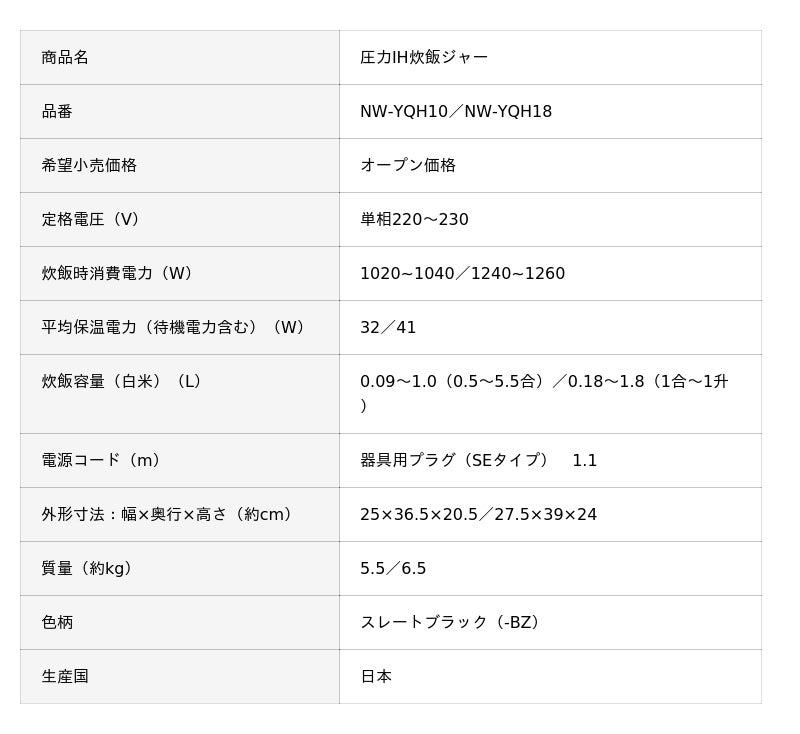 圧力IH炊飯ジャー(NW-YQH型)※写真はNW-YQH10