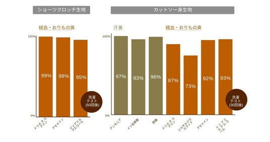 機能:繰り返し洗濯後も消臭性能を保持する耐久性試験実施、肌当たりに配慮した設計で日常使いに最適。