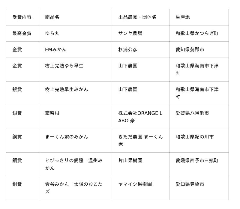 - 入賞:紅早生みかん/わかやまマルシン園/和歌山県海南市
