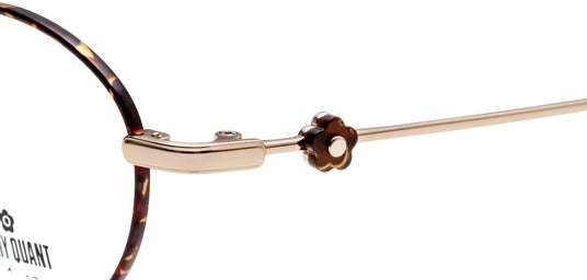 スクールガーリーな雰囲気のオーバルシェイプ。デイジーをデザインしたメタルテンプルに、華やかなカラーリングのロゴを採用し、知性と可愛らしさを表現しました。