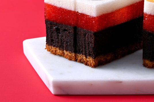 濃厚なガトーショコラとメレンゲ仕立ての白いパウンド生地の間に、甘酸っぱいストロベリーゼリーを重ねた新しいスイーツが誕生しました。