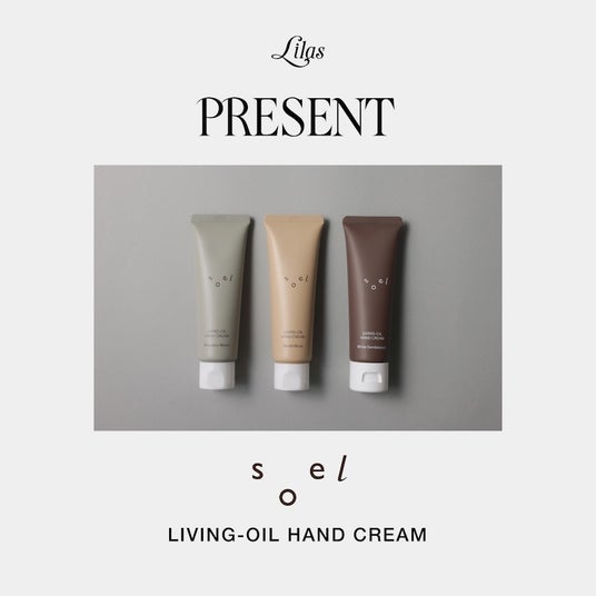 お買い上げのお客様に「soel リビングオイル ハンドクリーム」をプレゼントいたします。