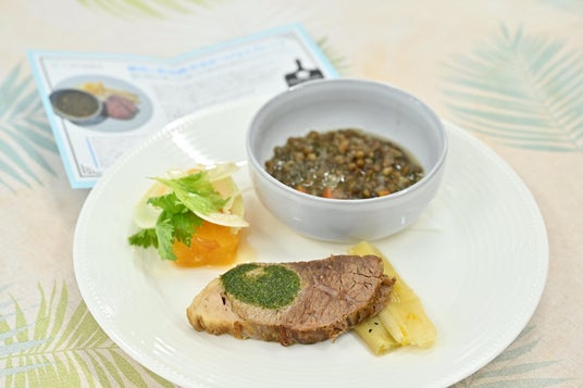 事前に実施した遺伝子解析をもとに、4種類のプレートを用意。千葉県でイタリアンレストラン「(h)etta(エッタ)」を経営する森岡拓也シェフがメニューを考案しました。糖質や脂質の分解しやすさに応じて、最適な食事になるよう工夫が施されています。