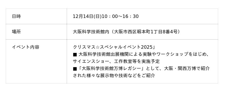 ■会社概要会社名: 一般財団法人大阪科学技術センター