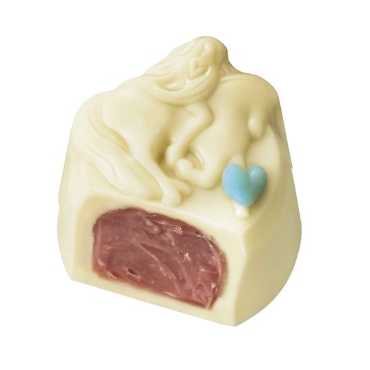 甘酸っぱくさわやかな味わいのラズベリーオレンジガナッシュをホワイトチョコレートで包み、酸味と甘味のハーモニーが絶妙のひと粒。