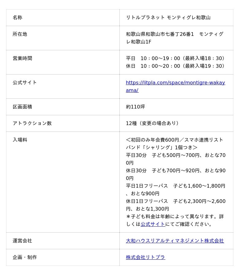 “遊びが学びに変わる”がコンセプトの次世代型テーマパーク「リトルプラネット」は、和歌山県初出店となる常設パーク「リトルプラネット モンティグレ和歌山」を、2025年12月12日(金)に和歌山市内の商業施設「モンティグレ和歌山」 1階にオープンいたしました。