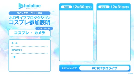 ハッシュタグは「#C107ホロライブ」となりますので、みなさまのコスプレ活動にぜひご活用ください!