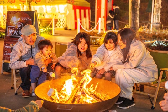 夕日の縁日通りでは暖かい憩いの場として、下記の日程にて焚火喫茶を開催いたします。お近くの売店でマシュマロ(200円)も販売しており、炙って香りを楽しみながら食べるのもおススメです。
