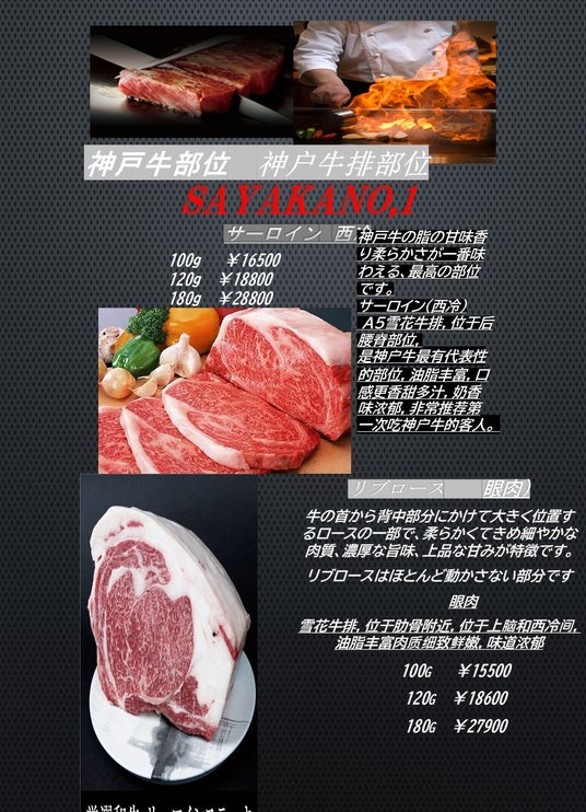 神戸牛鉄板ステーキ沙耶香食べログページです。メニューの内容や予約など安心してしていただけますよー