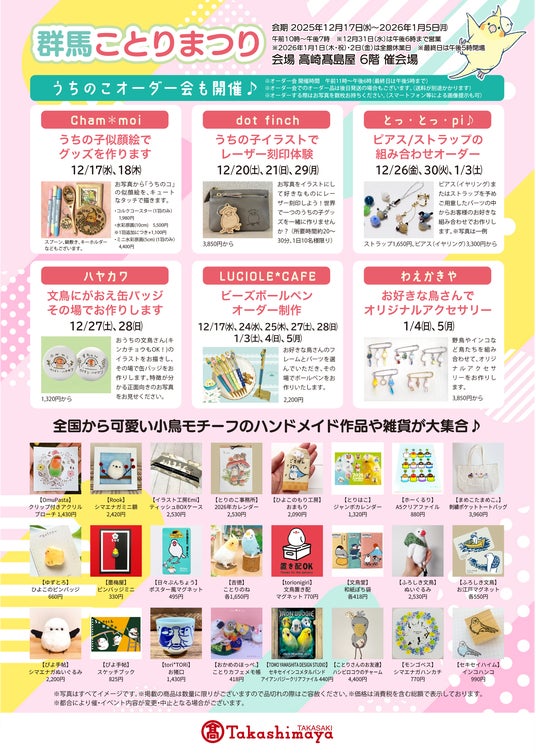 18日間のロングラン!高崎高島屋6階 催会場で「群馬ことりまつり」を開催します♪