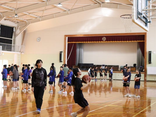 東京羽田ヴィッキーズ元プロ選手とコーチが静岡県藤枝市でバスケ指導/水ingAM