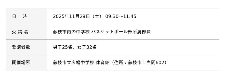 当社グループは、2018年7月に、志太広域事務組合(静岡県藤枝市と焼津市で構成される一部事務組合)より受託した新藤枝環境管理センター整備・運営事業における地域貢献活動の一環で、藤枝市内の中学校等でバスケットボールクリニックを開催し、今回は5回目となります。