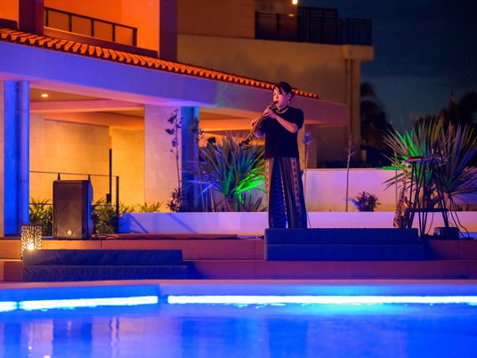 日が傾き、柔らかな陽光がアクアテラスのプールに差し込む頃、水面には幻想的なサンセットの景色が広がります。プールサイドバーでは、紹興酒・泡盛・ワイン・カクテルなどの厳選したアルコールを含むドリンクをフリースタイルでご用意しております。サンセットに合わせて毎日開催する音楽ライブが、刻々と移ろう空の色と共鳴し、この時間だけの特別な夕景を鮮やかに彩ります。サックスやトランペットの音色が海風に溶け込み、リゾートならではの心地よい夕暮れを演出します。ドリンク片手に、贅沢なサンセットのひとときをお過ごしください。サンセットライブは毎日開催し、その日の空模様や雰囲気に合わせた演出により、訪れるたびに異なる表情の夕景と音楽をお愉しみいただけます。