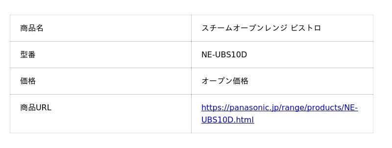 <商品情報>スチームオーブンレンジ ビストロ NE-UBS10D
