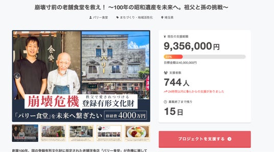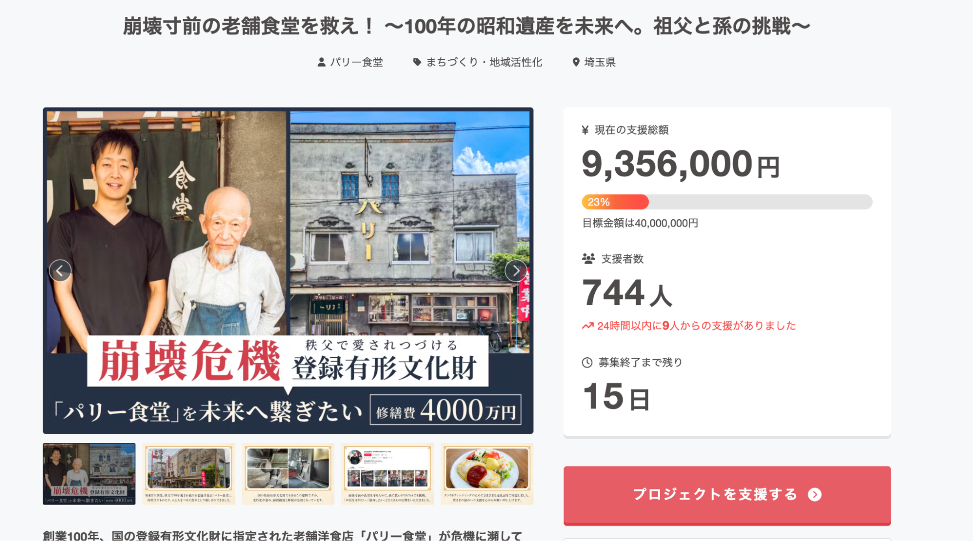 ■クラウドファンディング残り日数は15日。創業100年の食堂崩壊の危機に