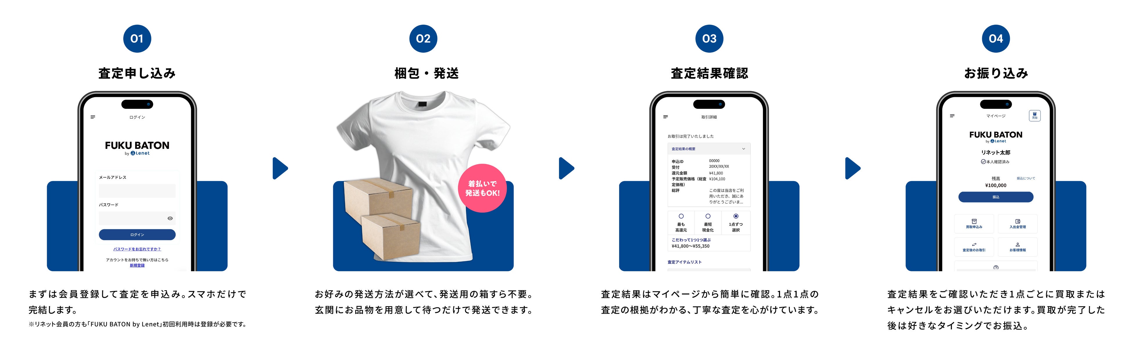 FUKU BATON by Lenetは、衣類、バッグ、靴などファッションアイテムの宅配買取サービスです。1.店舗を持たない運営で買取金額に還元
