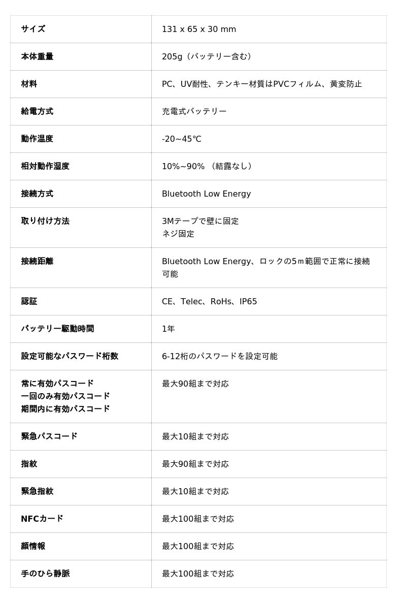 - 指紋認証: 最先端半導体センサーにより0.3秒で高速解錠、98%の認証精度を実現。