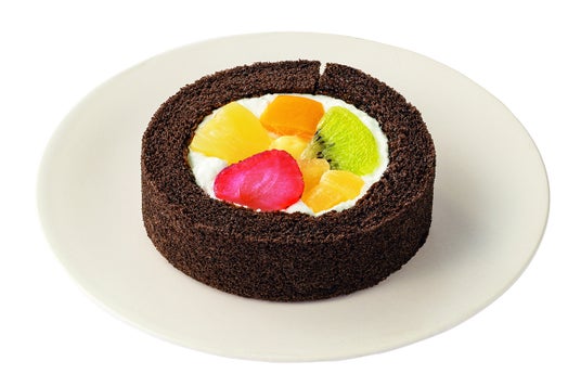 【内容】5種類のフルーツを使用した見た目も鮮やかなロールケーキです。(イチゴ、パイナップル、黄桃、キウイ、りんご)