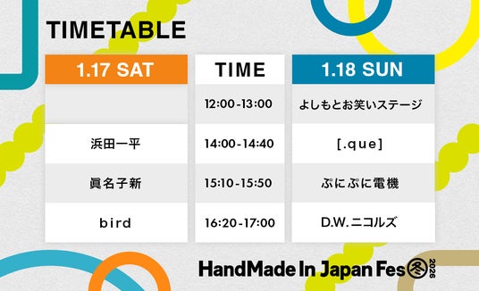 総勢9組の出演アーティストが決定、タイムテーブルも公開!日本最大級・クリエイターの祭典「HandMade In Japan Fes' 冬(2026)」