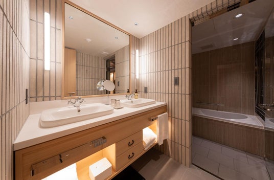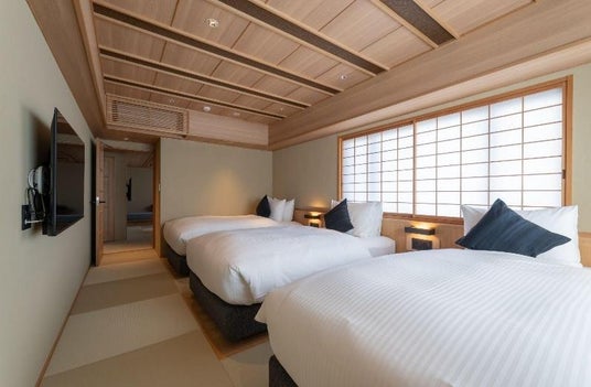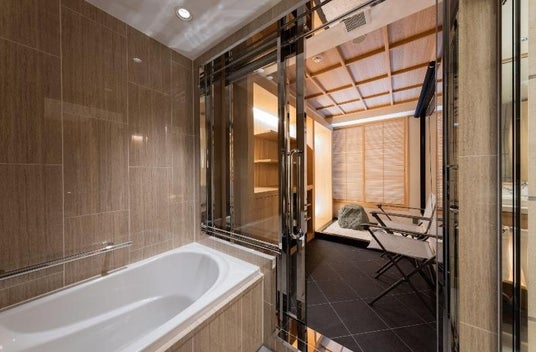 「soyo-ka kyoto sanjo」の客室(全8室)は、特別なバリューアップを実施しました。4室は浴室をアップグレードし、上質な滞在体験を提供できるようにしました。4室は浴室横の空きスペースを活かして「枯山水」を新設し、京都の美意識を深く体験できる空間になりました。