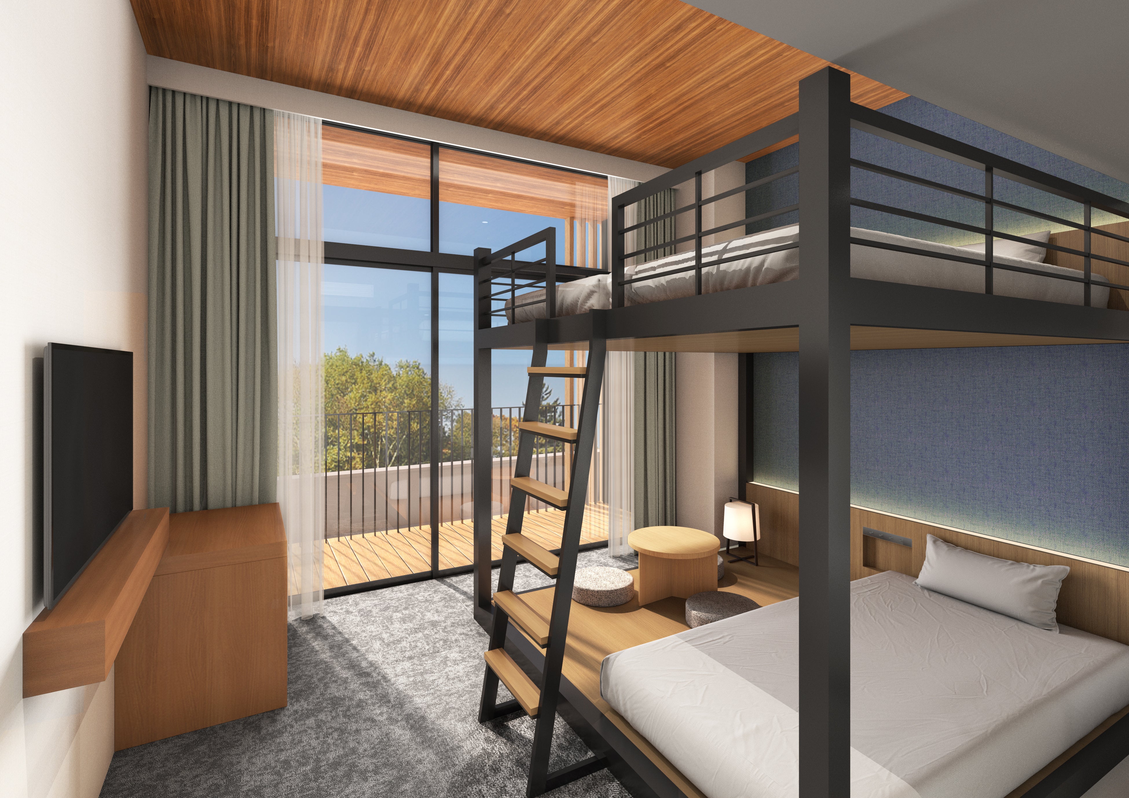 スマートな滞在に適した「スタンダードダブル」「スタンダードツイン」、機能性と遊び心を取り入れた「バンクベッド トリプル」、ファミリーでのご利用にも最適な「コンフォートスイート」、そして82.5平方メートル の広さを誇る「プレシャススイート」(定員5名)など、旅の目的や人数に応じてお選びいただけます。