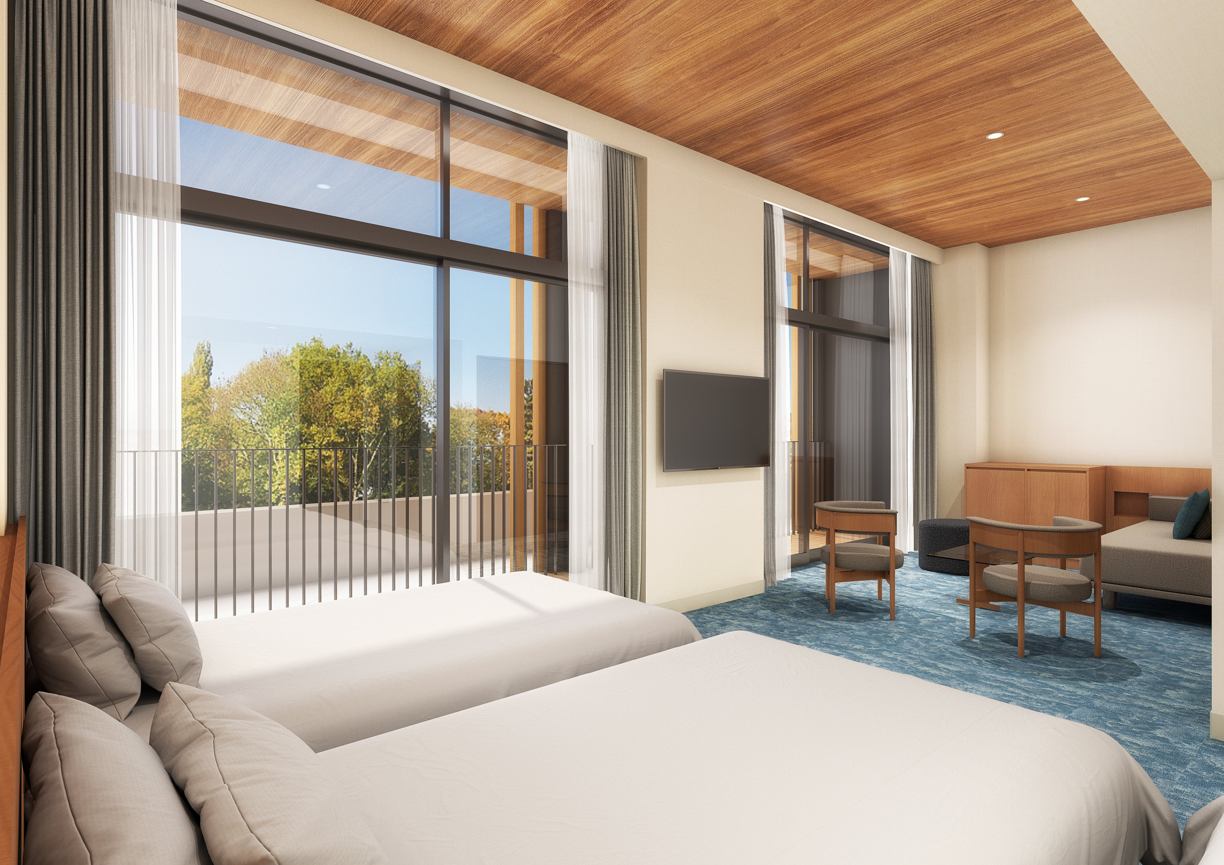 福島県双葉町・中野地区復興産業拠点に開業予定の、地域最大規模のバンケット&カンファレンスルームを備えたリトリート型ホテルです。東日本大震災・原子力災害伝承館や、今後整備予定の福島県復興祈念公園に隣接し、地域の再生と交流の拠点としての役割を担います。