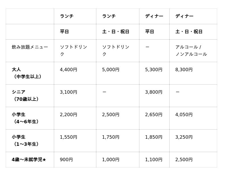 【料金】 ※料金は、税金・サービス料を含みます。 ※シニア料金は各種割引・特典との併用不可。