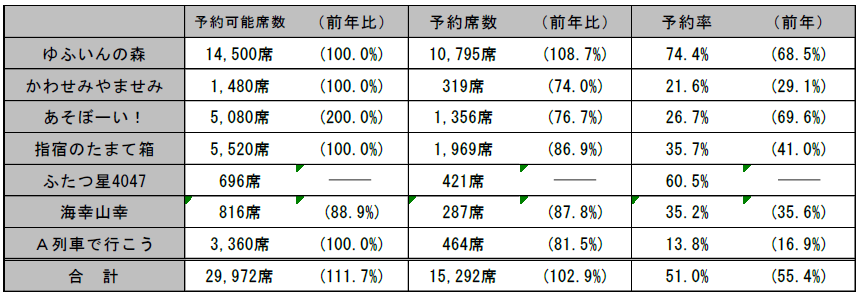 ※「36 ぷらす3」「或る列車」「かんぱち・いちろく」は、旅行商品(ツアーデスクでのパッケ