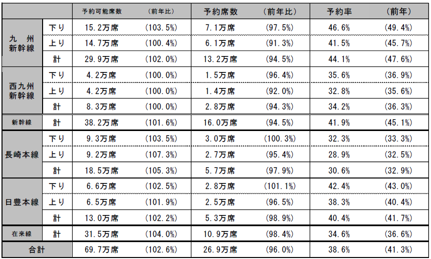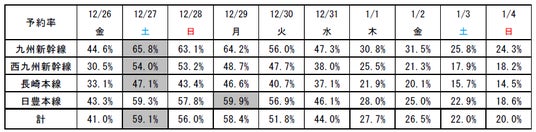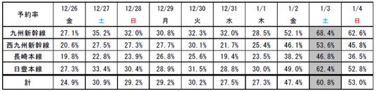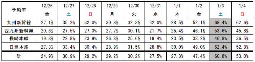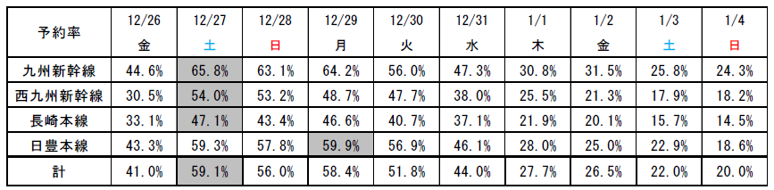 年末年始期間 指定席予約状況について12 月26 日(金)~1 月4 日(日)