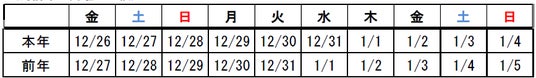 期間中の予約状況は下りが12 月27 日(土)、上りが1 月3 日(土)に最も多くご予約を頂い