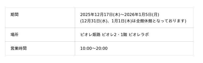 期間:2025年12月17日(水)~2026年1月5日(月)
