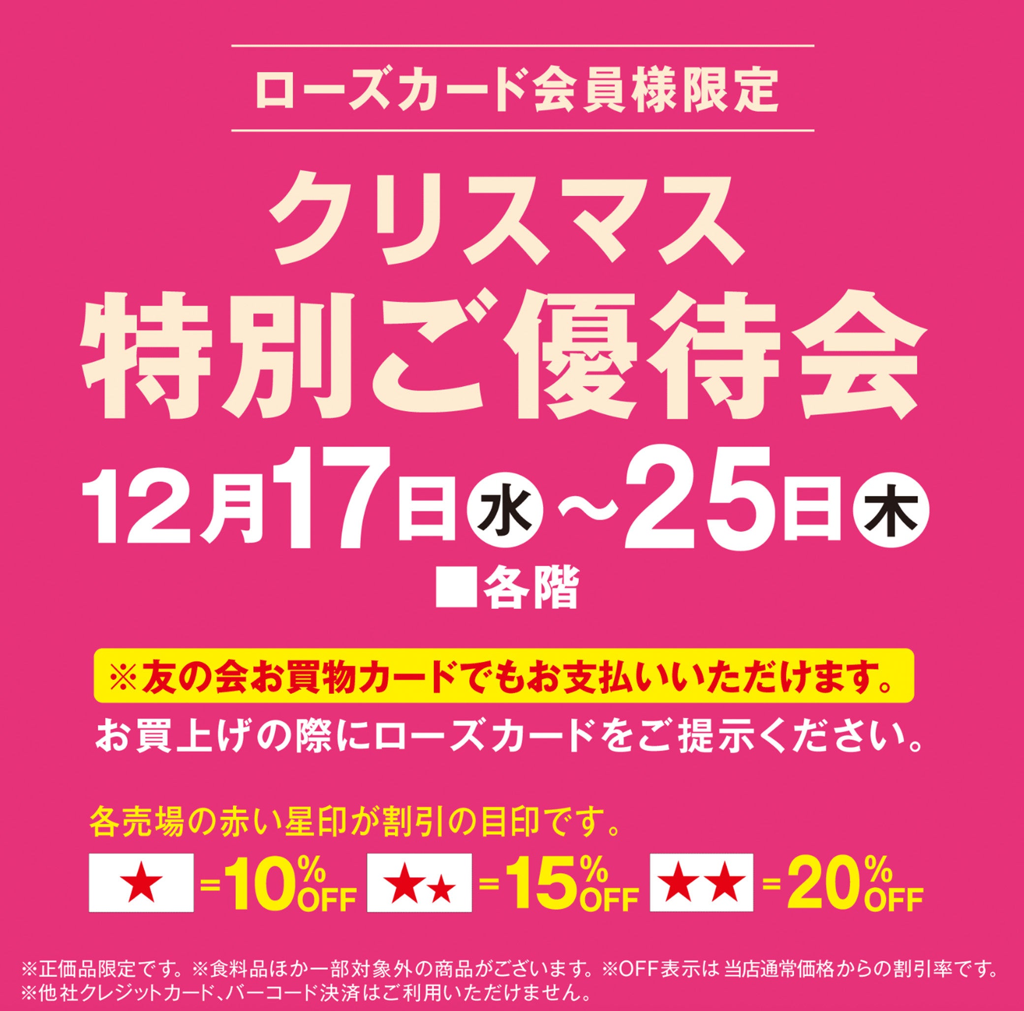 なお、12月17日(水)から12月25日(木)の期間中、いよてつ高島屋ではローズカード会員様向けの「クリスマス特別ご優待」が実施されます。こちらのご優待は、POP UP SHOPおよび「PARCELLE JEWELRY 愛媛松山店」の両店でご利用いただけます。詳細はお電話(089-948-2856)または店頭スタッフまでお問い合わせください。