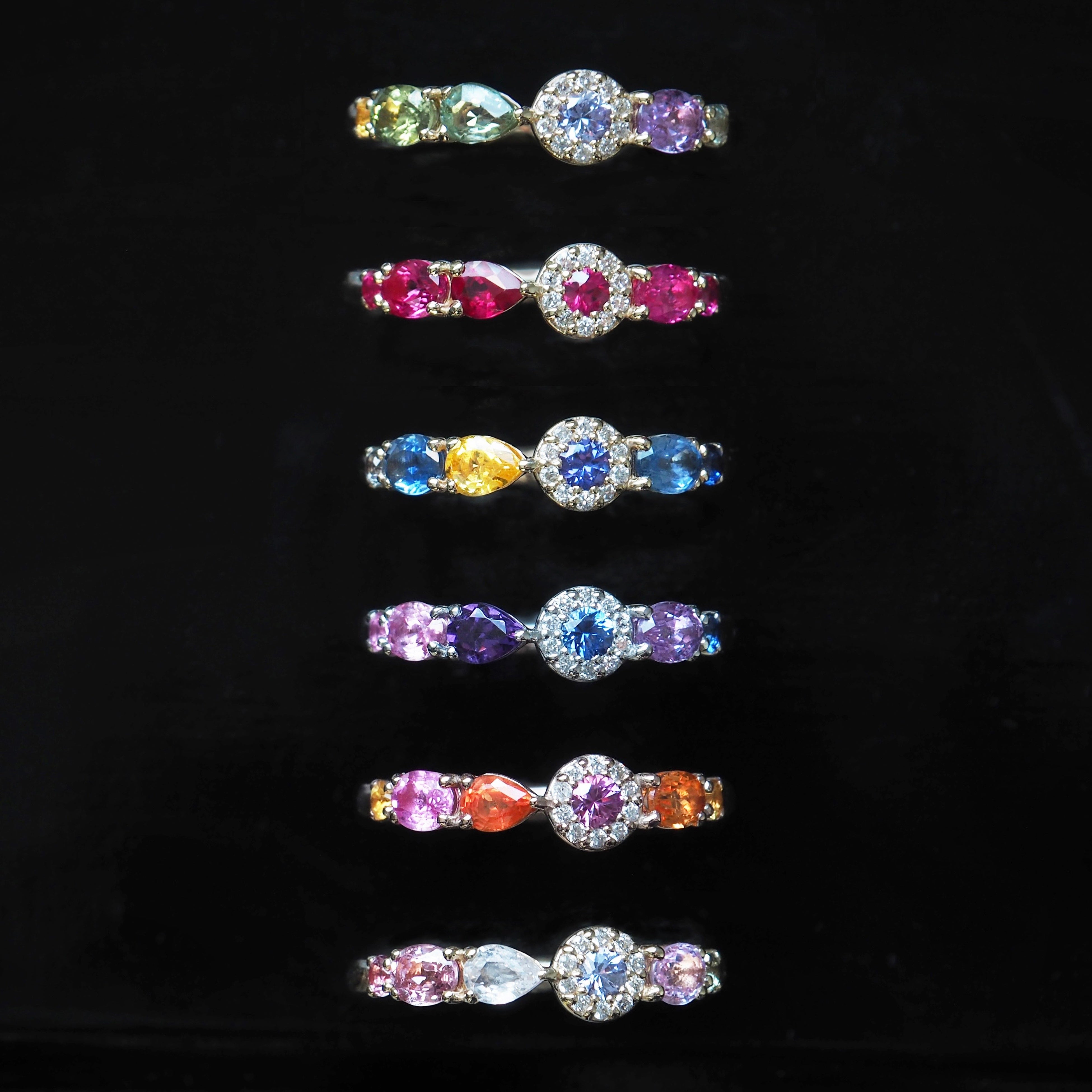 パーセル ジュエリーの人気シリーズのひとつ「Cent Couleur(サンクルール)」は、“100の色彩”を意味します。形や色、個性の異なる宝石を一本のリングに集め、色の重なりやリズムによって世界観を描く、ブランドを象徴するコレクションです。
