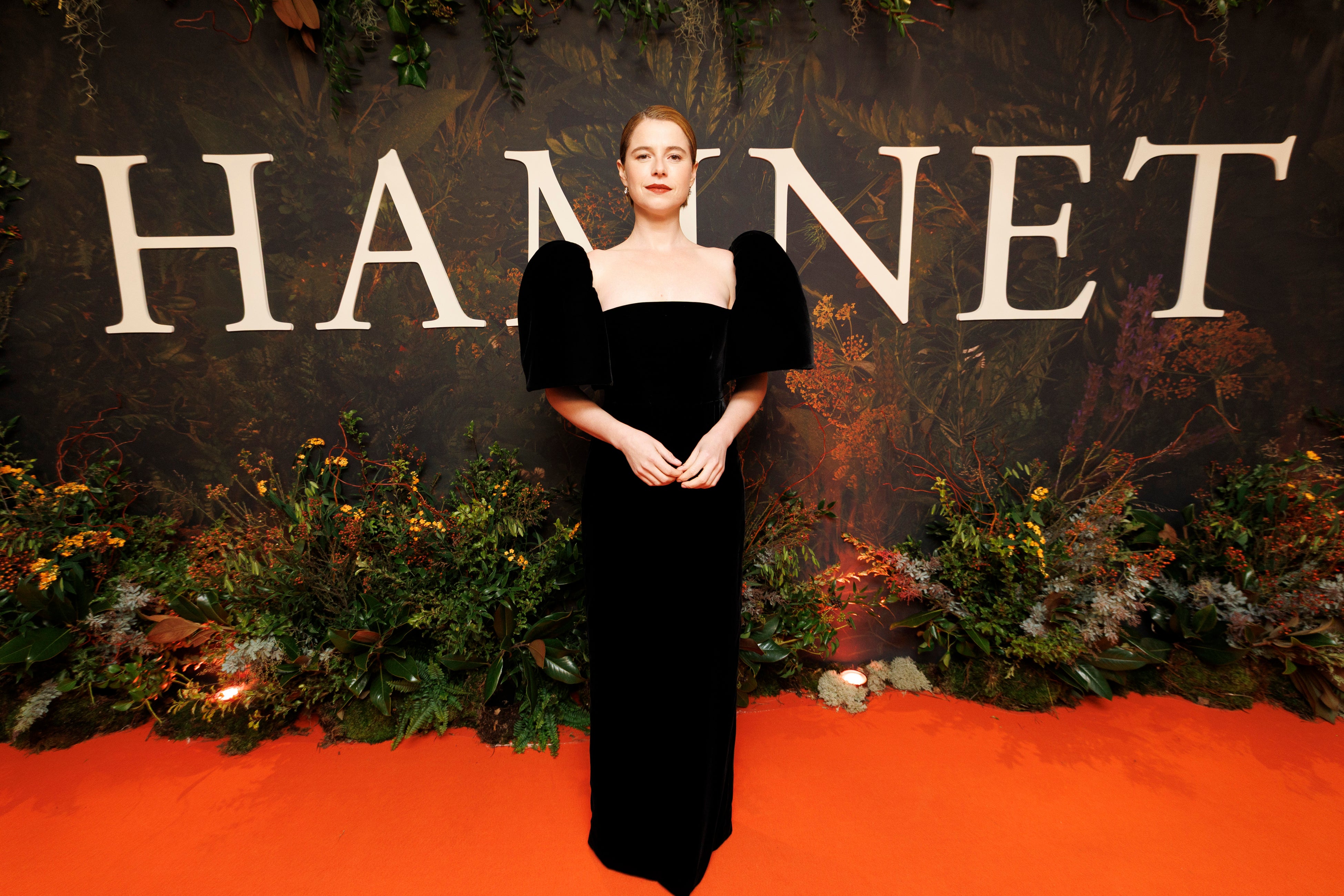 ジェシー・バックリーが、ダブリンで開催された映画「ハムネット」のプレミアに、ルイ・ヴィトンのカスタムメイドドレスを着用し登場しました。