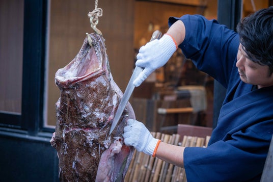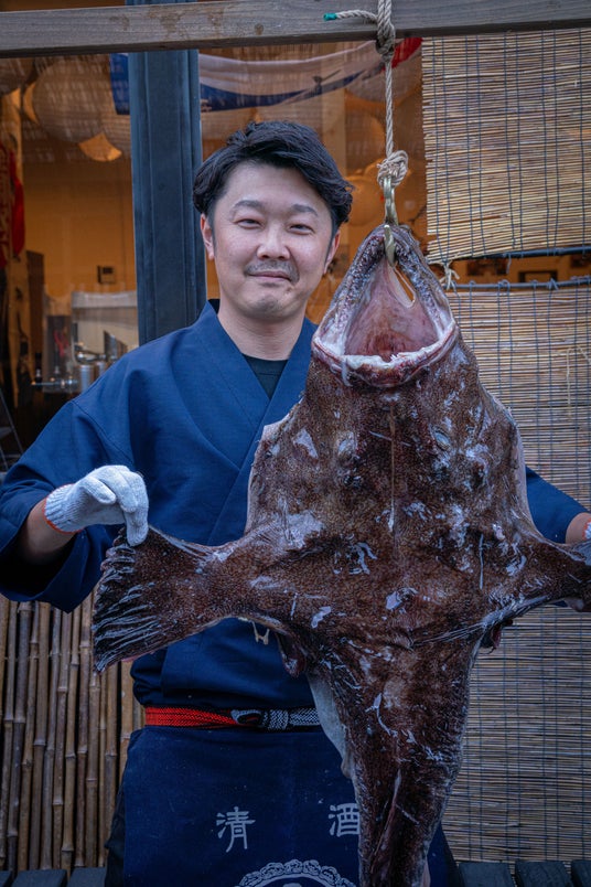 「アンコウのつるし切り」は、ヌメリが強くまな板では捌けないアンコウを吊るし、重力を活かして捌く伝統的な調理技法です。海なし県の埼玉で、普段なかなか見る機会のない吊るし切りを間近に見て、あんこうの体のしくみについても知ることができる貴重な機会です。海産物の魅力と日本の食文化の奥深さに触れていただきたいという思いから実施します。