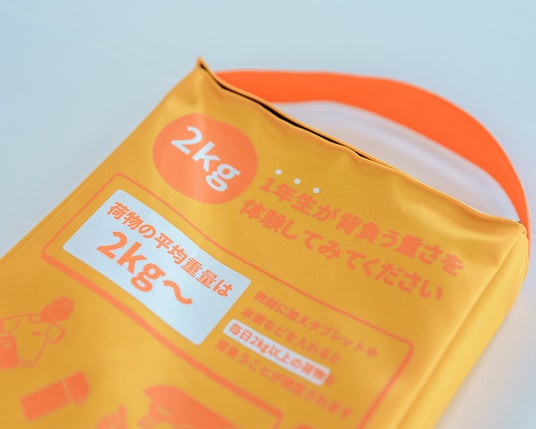 2.ぷにぷにの肩ベルト「楽ッション」を触って・背負ってラクラク体験