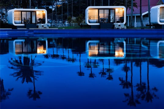 「自然と同期する」がコンセプトの近未来デザインのトレーラーホテル『SPACE KEY POINT』。マリブファームの特別ディナーコースで愉しむ宿泊プランをご用意。そのほかにも、目の前に広がる海を感じてととのうオーシャンサウナや、焚火を囲んでスモアを楽しむオプションも充実。冬のグランピングをご堪能いただけます。
