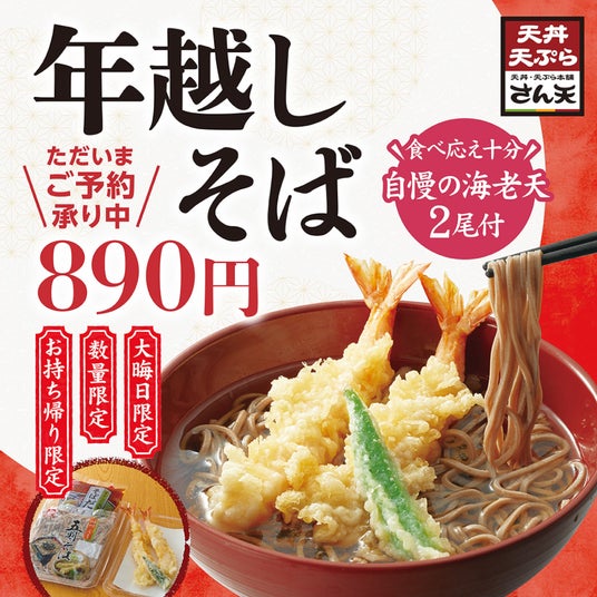 毎年ご好評をいただいております、「海老付き年越しそば」を今年も大晦日限定で予約販売いたします。