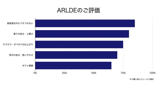 実際にご購入いただいたお客様のレビューをもとに集計した結果、「高保湿なのにベタつかない使用感」や「香りの良さ・上質さ」に対して、特に高い評価をいただいています。