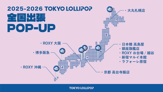 concon株式会社(所在地:東京都港区、代表取締役社長:高橋史好)が展開する、2024年Forbes JAPAN「Culture-Preneurs 30」選出ブランド「TOKYO LOLLIPOP(トーキョーロリポップ)」は、2025年冬から2026年春にかけて、全国11エリアの主要商業施設にて期間限定ポップアップストアを順次開催いたします。