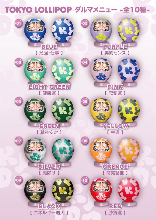 ・展開商品:TOKYO LOLLIPOP DARUMA(全10カラーx各4サイズ展開)