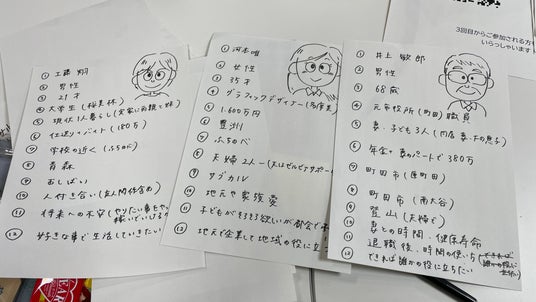 第2回で話し合われた「まちだで夢がかなえられそうな人」がまちだで送るストーリーについてグループディスカッション(雑談・交流を交えながら進行)