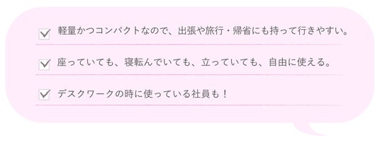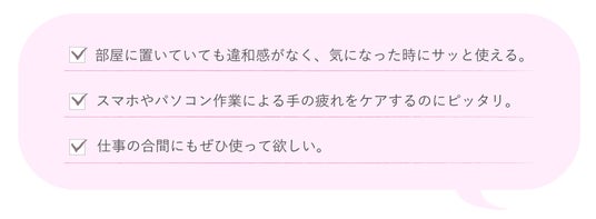 コードレス仕様なので場所を選ばず使用可能。さらに嬉しい温熱ヒーター付。スマホをよく使う方や、手先が冷えやすい方に最適なアイテムです。