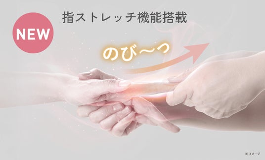 21層のエアバッグが指先から手首までを包み込み、心地よいマッサージを行うハンドケア コードレス。注目なのは、新開発の「指ストレッチ」機能です。指をぐっと引き伸ばし、解放することで、手の疲れがスッキリ抜けていく感覚を味わえます。